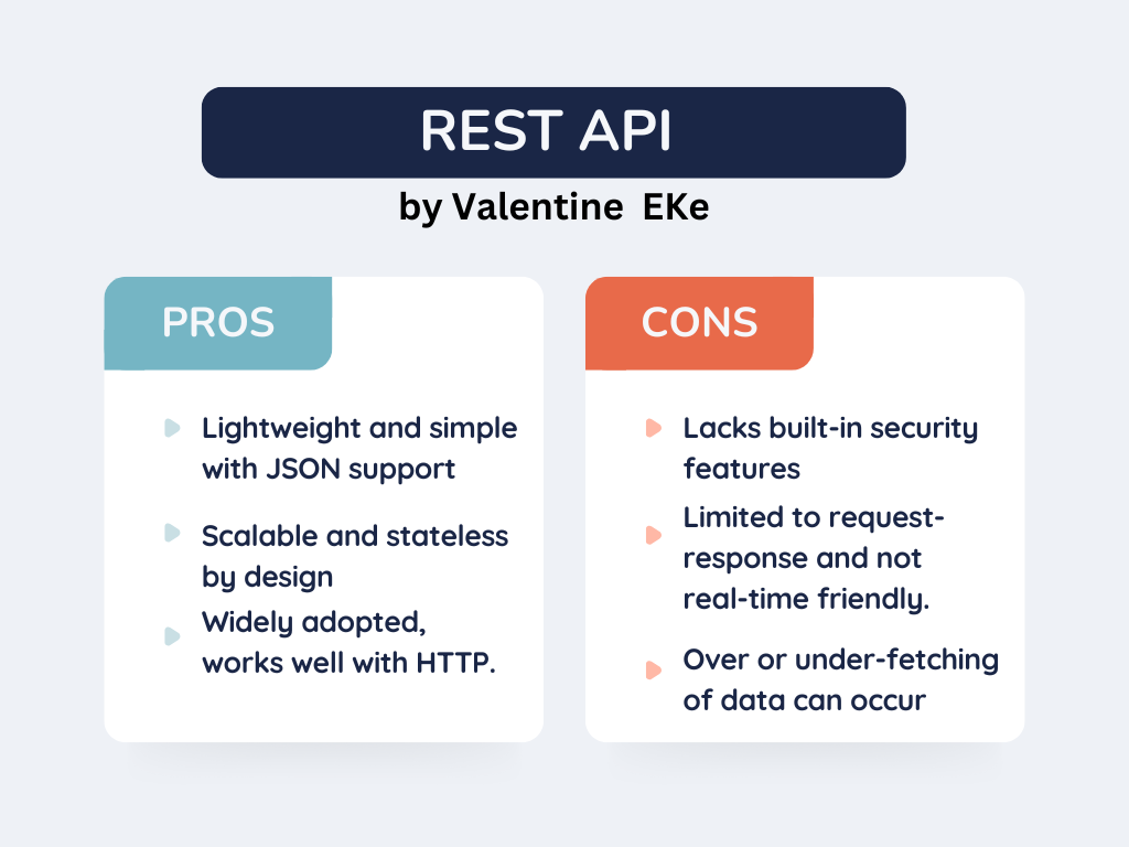 Điểm mạnh của REST nằm ở sự đơn giản và nhất quán. REST tận dụng trực tiếp hạ tầng HTTP, không yêu cầu giao thức phức tạp, dễ triển khai và dễ hiểu. Các nguyên tắc như stateless (không lưu trạng thái ở server) hay khả năng cache giúp REST API dễ mở rộng và phù hợp với nhiều loại hệ thống khác nhau. Chính vì vậy, trong giai đoạn các ứng dụng web phát triển mạnh, REST nhanh chóng trở thành tiêu chuẩn de facto cho việc xây dựng API.