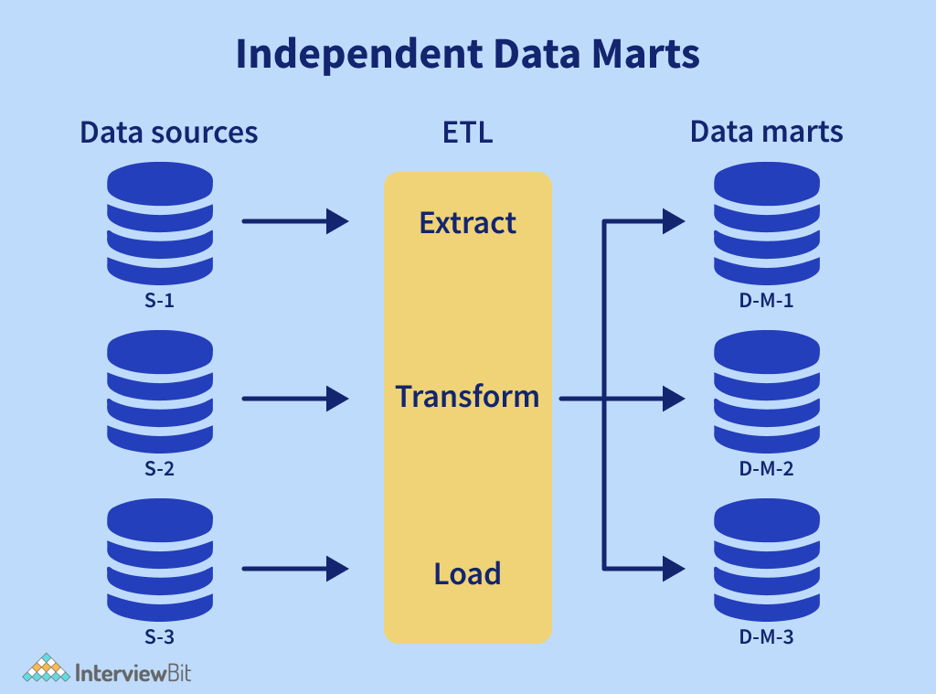 - Các Data Mart thường được triển khai như quy trình extract/transform/load (ETL/ELT) lên một layer dataset trừu tượng